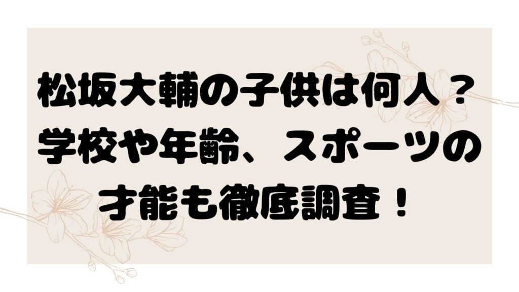 かつて「平成の怪物」として日本中を熱狂させた元プロ野球選手・松坂大輔さん。引退後も、その人柄や家族に注目が集まっています。特に気になるのが「松坂大輔の子供は何人いるの?」「どんな学校に通っているの?」といった話題ですよね。 本記事では、松...